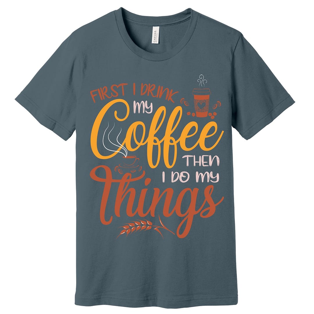 Funny Coffee T-Shirt – First I Drink Coffee Then I Do My Things